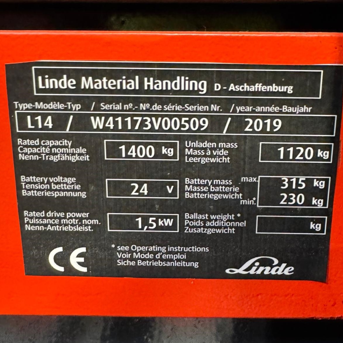 Apilador Linde L14 W41173V00509